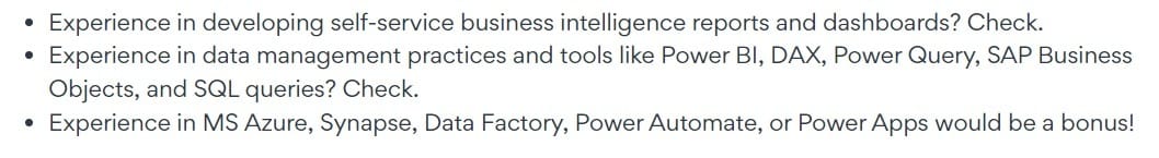 Always, have the key words from the job description somewhere in your resume. This description is from a Remote Senior Analyst role; a lot of key words here..